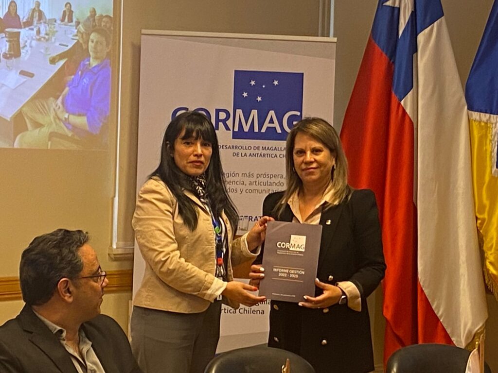 Asimismo, durante la asamblea se realizó la entrega oficial del documento físico “Informe de Gestión CORMAG, período 2022–2025”, el cual fue recibido por la Presidenta del Directorio de la CORMAG, Eugenia Mancilla, en su calidad de Gobernadora Regional (s) de Magallanes y de la Antártica Chilena. Este informe consolida el trabajo desarrollado desde la instalación de la Corporación, dando cuenta de los avances institucionales, iniciativas impulsadas y resultados obtenidos en el período.